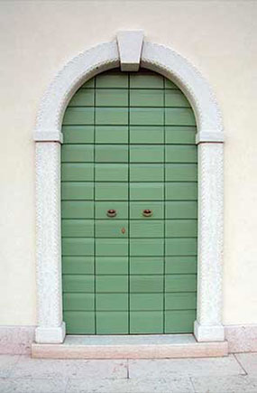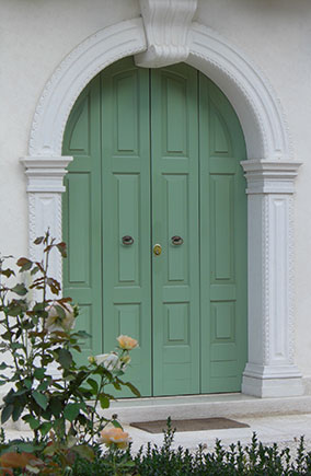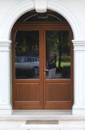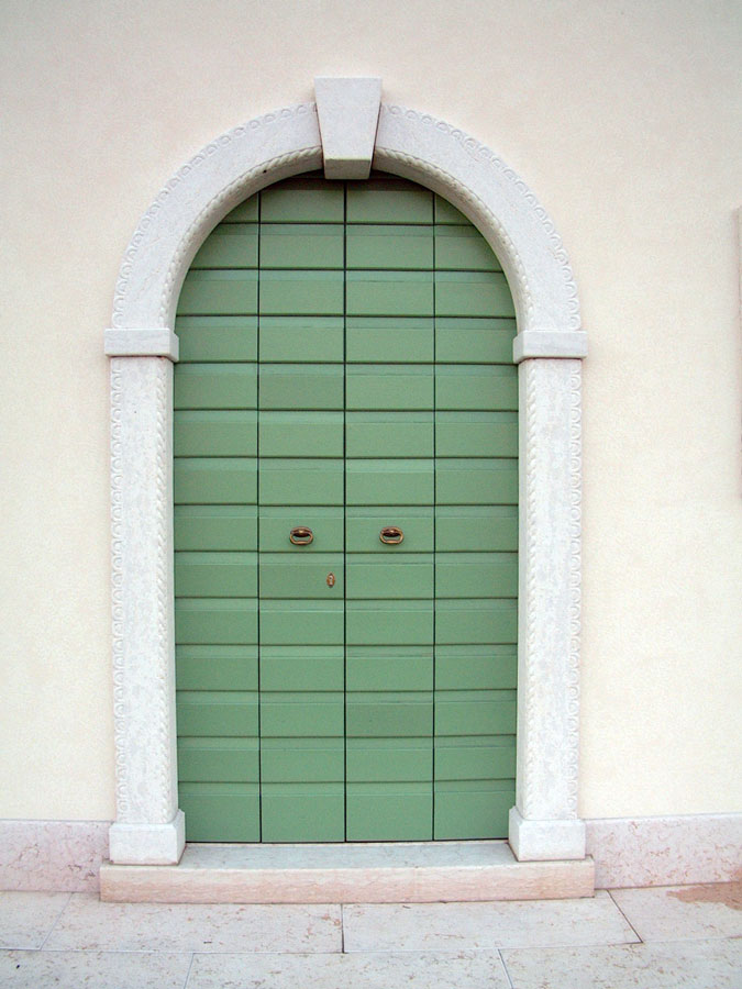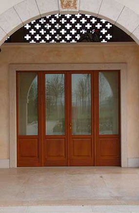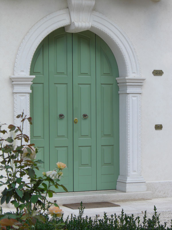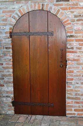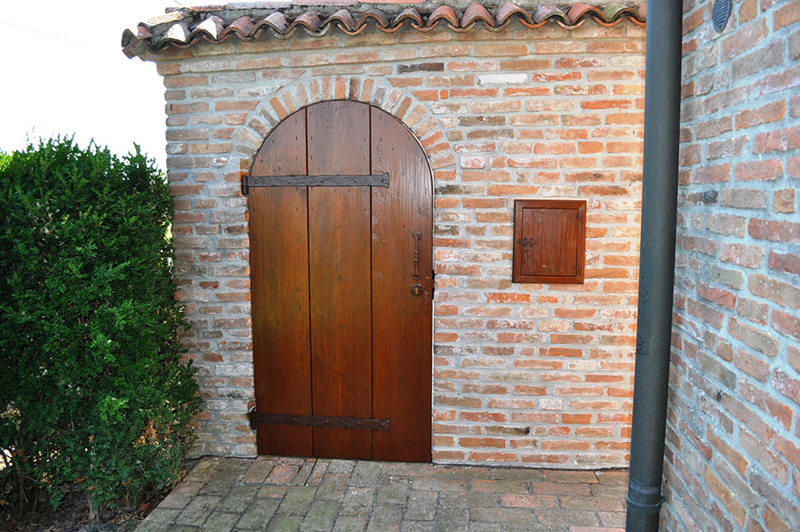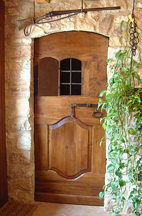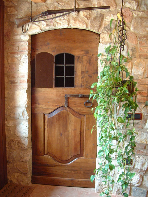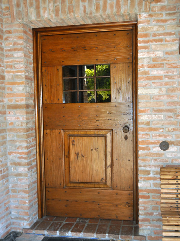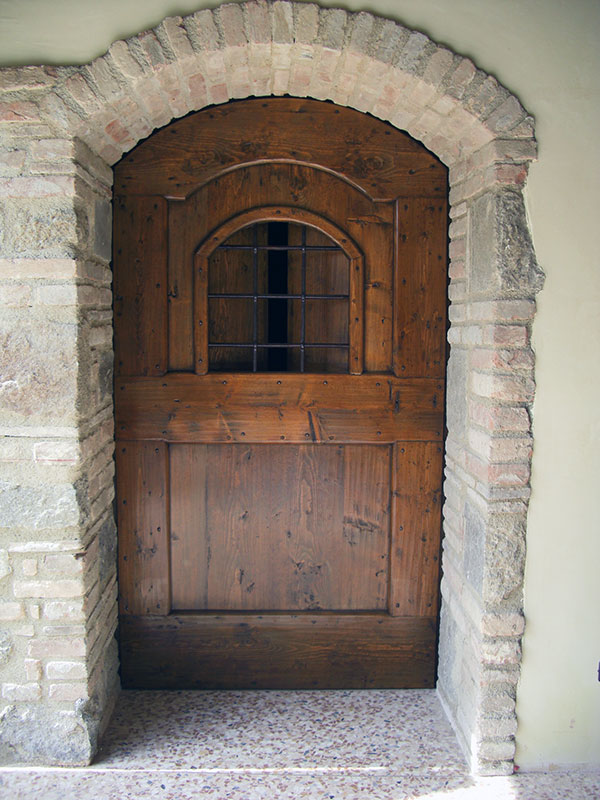 in legno di noce piallata a mano con catenacci originali e finestrella completa di inferriata e sportellino in ferro battuto